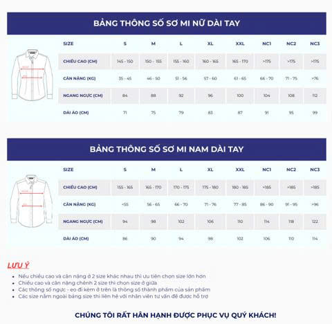 Bảng size may áo sơ mi đồng phục dài tay kẻ tím TP Bank hết sức đa dạng. Các size áo sơ mi đều được thiết kế để phù hợp với vóc dáng cơ thể người Việt, đem lại cảm giác thoải mái và tôn dáng. Tham khảo bảng size chi tiết dưới đây để lựa chọn size đồng phục sơ mi phù hợp: