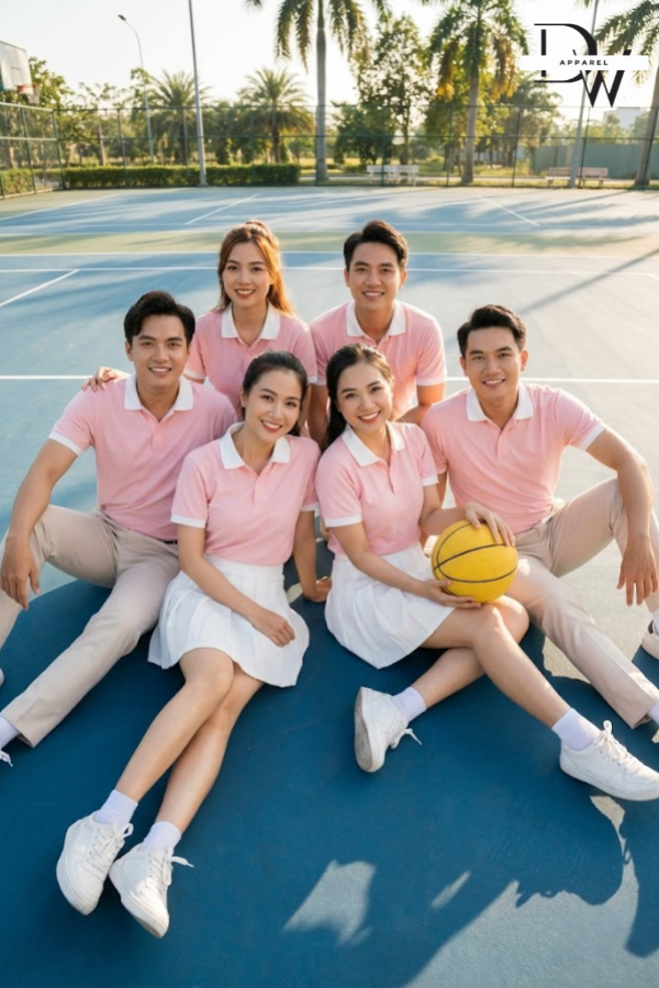 Áo thun đồng phục công ty Ecotton màu đỏ phối trắng gạo